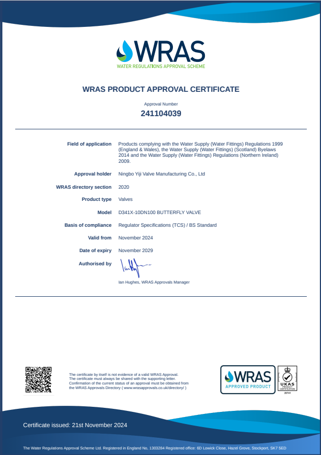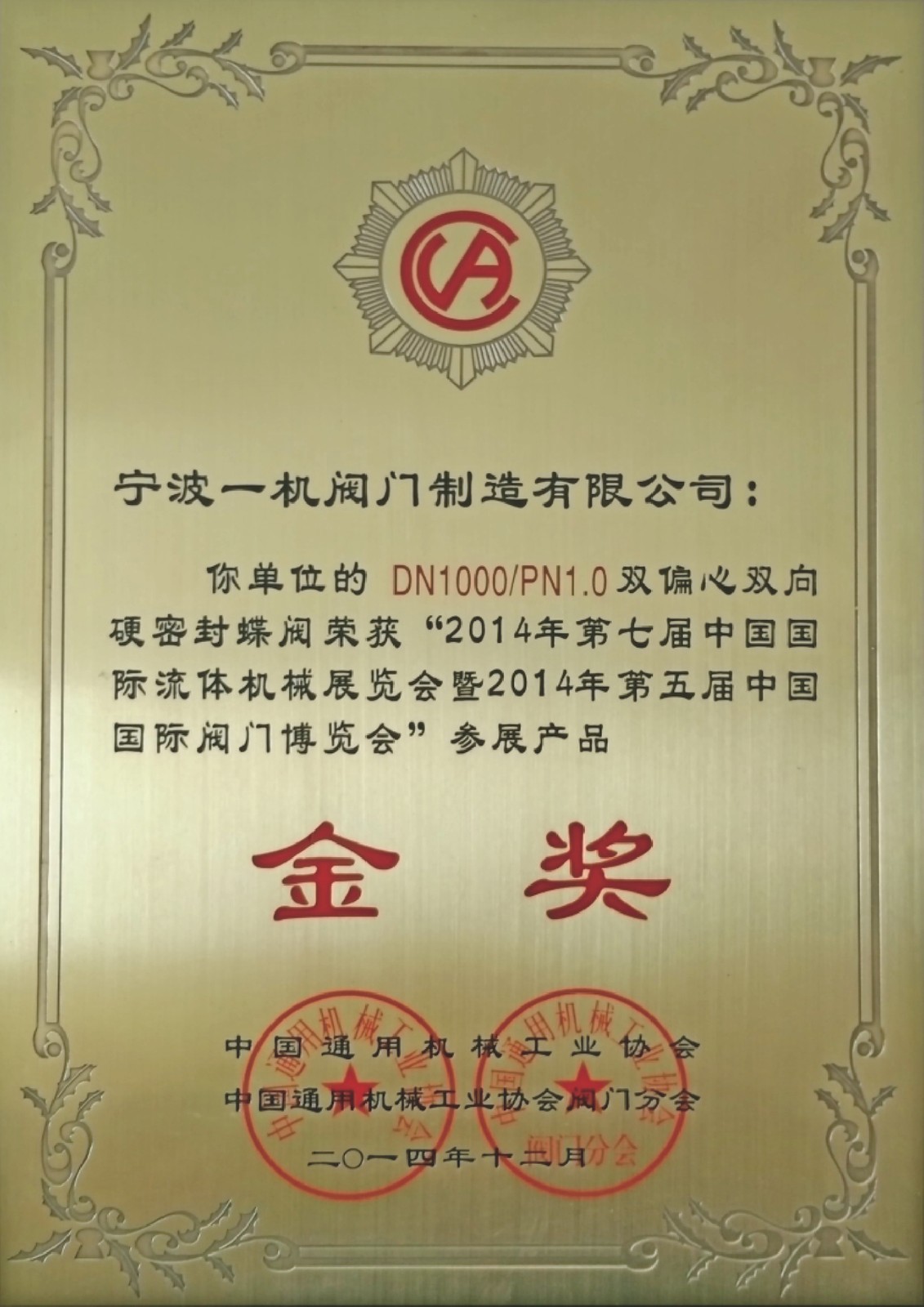 公司“EG”牌商標是中國馳名商標和國家級推廣品牌,公司已通過ISO9001國際質(zhì)量體系認證、ISO14001環(huán)境管理體系認證、ISO45001職業(yè)健康安全管理體系認證歐盟CE產(chǎn)品認證、英國WRAS認證、中國CCCF消防產(chǎn)品認證、測量管理體系A(chǔ)AA認證、知識產(chǎn)權(quán)管理體系認證、蝸輪傳動裝置IP68防水防塵認證、商品售后服務(wù)五星認證,并取得國家質(zhì)檢總局的特種設(shè)備制造許可證。多年以來公司參與制訂了多項國家標準,主持或參與制訂了多項企業(yè)團體標準,是《雙偏心雙向金屬硬密封蝶閥》技術(shù)標準制定者。DN2600雙偏心雙向金屬硬密封蝶閥被認定為高端裝備制造業(yè)重點領(lǐng)域浙江省首臺(套)產(chǎn)品。累計取得國家各項閥門專利百余項。近年來被評為浙江省工商企業(yè)信用AAA級“守合同重信用”單位,企業(yè)銀行資信等級AAA單位,奉化區(qū)納稅百強企業(yè),奉化市市長質(zhì)量獎。2020年12月被寧波市人民政府授予寧波市推進“六爭攻堅、三年攀高”行動,加快高質(zhì)量發(fā)展百強企業(yè)。